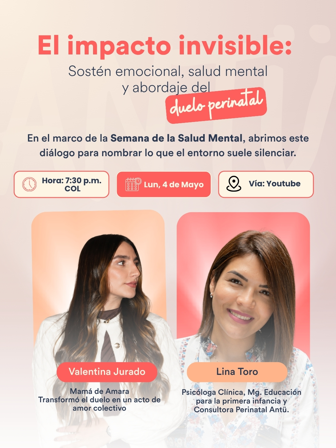 En el marco de la Semana Mundial de la Salud Mental Materna, en Antü decidimos abrir tres diálogos honestos sobre lo que el sistema suele ignorar: el duelo, la neurobiología del vínculo y el impacto de la infertilidad.