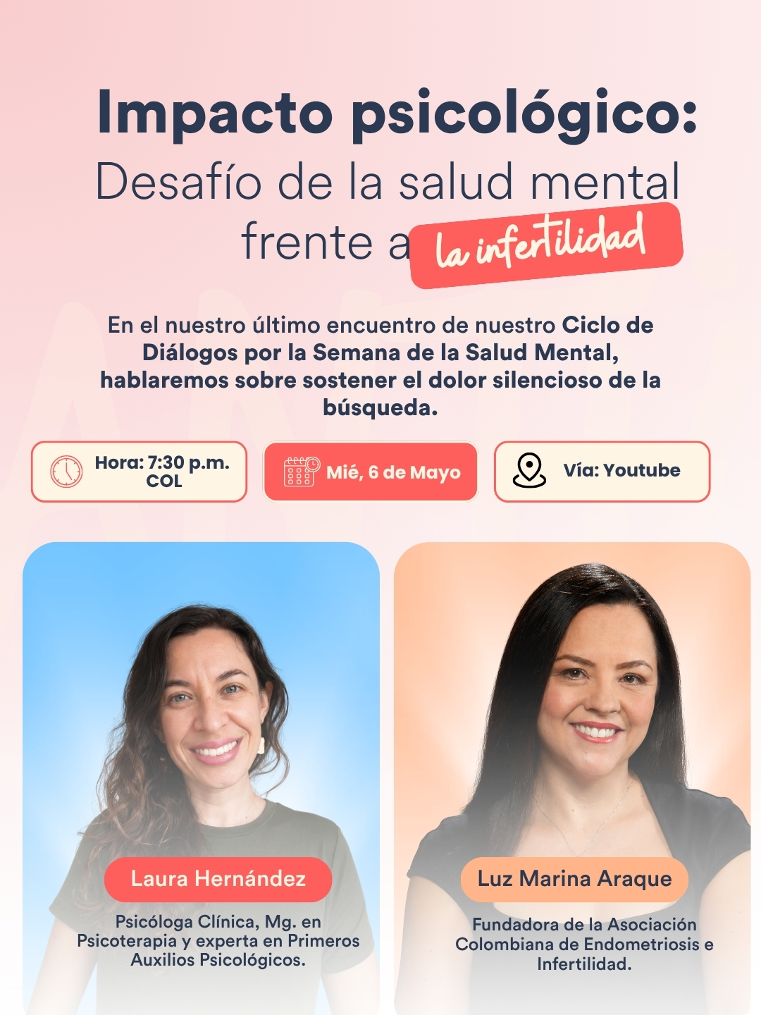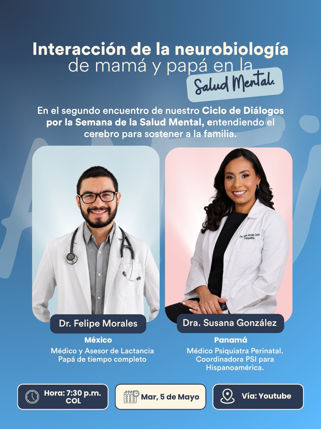 Desde Panamá, nos traerá su visión como psiquiatra perinatal y coordinadora de PSI, experta en detectar y tratar trastornos del ánimo en el postparto con rigor internacional.